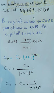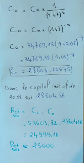 Une personne place 40000 OH le 1ére janvier 2005 à un taux d’intérêts composés de 5% par an. Elle fait un premier retrait six ans plus tard, en janvier 2011, pour financer un projet. En janvier 2015, le solde total est de 34769,15