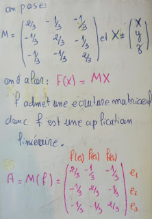 1) Montrer que f est une application linéaire et donner la matrice A de f relativement à la base canonique de IR3